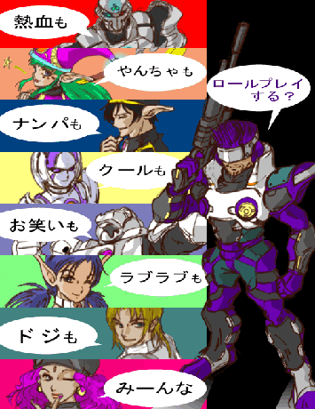 JALOD殿から頂いた1万ページビューの 記念CGです。 さぁ、台詞とキャラクタが繋がっているようですが、 それぞれ誰なんでしょうね〜?(^^) 楽しいCGありがとうございました!
